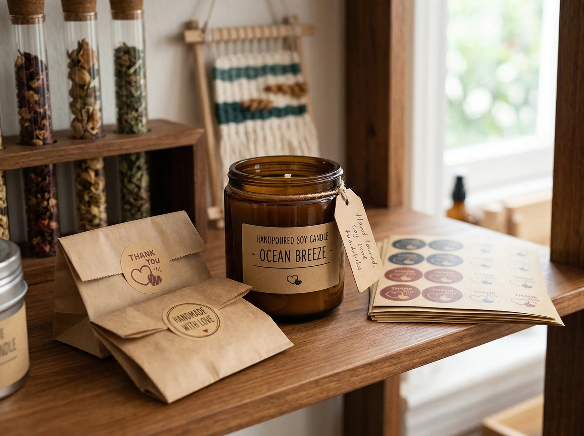 Kraft paper sticker sheets are a natural fit for candles, handmade soap, coffee bags, bakery boxes, skincare jars, and other small-batch products. The textured paper finish helps packaging feel more thoughtful, handcrafted, and aligned with artisan or organic brand positioning.